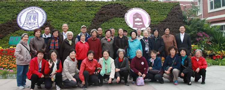 活动结束后,大家在百年校庆大花台前合影留念。