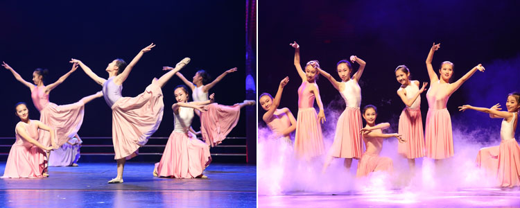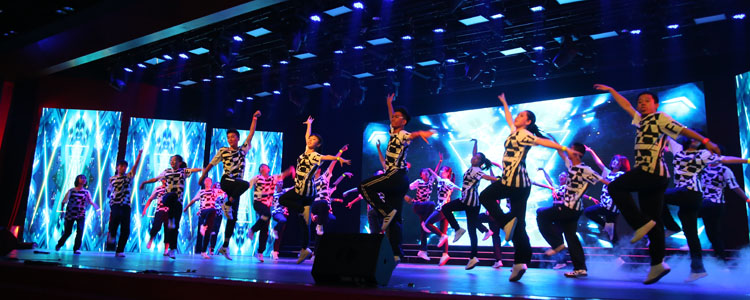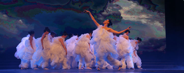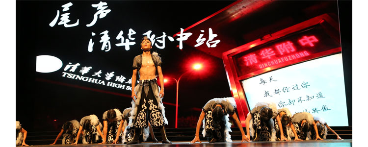 第四章“韵”,以舞蹈和诗朗诵为主要艺术手段,重点突出辉煌与未来。舞台上乐声袅袅,舞者姿态娉婷,附中教师自编自演的舞蹈《云影芳菲》展示了老师们对美的不懈追求和对澳门博彩在线这块土地执着的苦恋。这是一支由数学教师、物理教师、美术教师、体育教师、音乐教师和校医老师组成的教工舞蹈队。讲台上,他们播撒智慧;舞台中,他们翩若惊鸿。在澳门博彩在线这片沃土上,每一位教师都是美的追随者、拥有者、传播者。舞蹈《鸿雁》压轴出场,表现了澳门博彩在线对理想的追求,对信念执着,对责任的担当,艺术地诠释了“自强不息,厚德载物”的清华精神。表演者是一群即将参加高考的高三大男孩儿。目光坚定,雁阵如磐。一羽云霄,声动九天。你很难想象,这样一群舞蹈零基础的孩子是怎样演绎出如此精美绝伦的舞蹈。《鸿雁》是鞠红老师和同学们用心血和汗水凝结成的结晶。