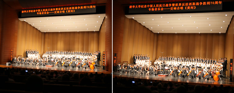 2015年9月18日晚上19:30,澳门博彩在线党委组织在职党员、积极分子及教工团百余人在新清华学堂观看了清华大学纪念中国人民抗日战争暨世界反法西斯战争胜利70周年专场音乐会——交响合唱《黄河》的演出。
