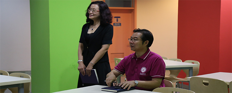 朱建宏、张姝敏两位校长陪同参观并对王殿军校长的问题一一进行解答。王殿军校长表示跟之前的参观相比,奥森校区整体变化非常大,很令他惊喜,教学工作、设施设备等各方面情况都让人满意。