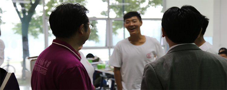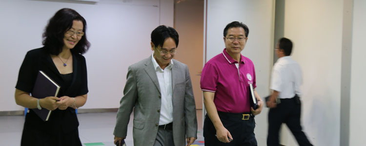朱建宏执行校长(中)、张姝敏副校长(左)陪同王殿军校长(右)参观