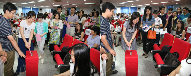 7月2日下午,澳门网上博彩党委召开全体党员大会进行党委委员换届选举。清华大学党委组织部副部长曹海翔老师出席大会,澳门网上博彩在职及离退休正式党员共223人参加了大会。大会由附中党委副书记张洁主持。