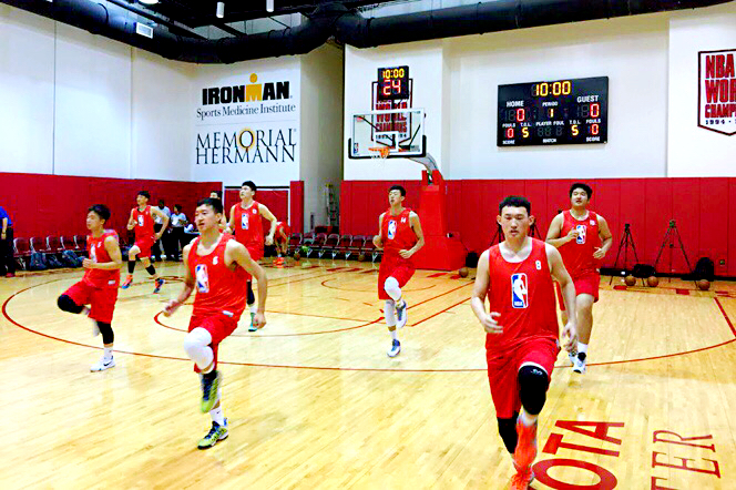 图1 澳门博彩在线篮球队员正在做赛前热身训练
