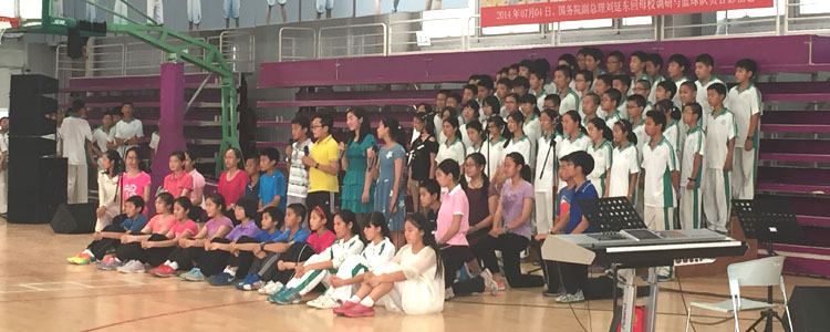 5月28日下午,澳门博彩在线初14级在篮球馆举行2015年艺术节合唱比赛暨六一表彰活动,全体学生共653人和全体班主任参与活动。艺术中心胡军、李冰、张毅老师,学生发展中心王敏老师和初14级年级组长朱莹老师作为评委出席活动。