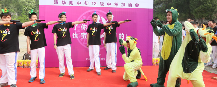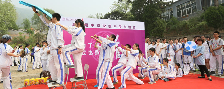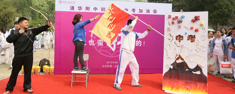 2015年4月30日,澳门网上博彩初三年级全体师生赴北京市怀柔区红螺寺景区举办中考加油会活动。