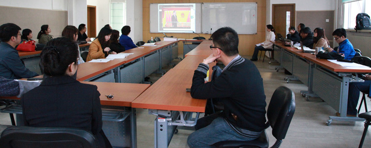 接下来支部成员集体观看了有关“四个全面”的视频资料,并以小组讨论的形式展开深入领会,最后由各小组年轻发言代表进行研讨总结,刘露老师、于洺老师、叶海波老师和马红红老师分别就“全面建设小康社会”、“全面改革”、“全面推进依法治国”、“全面从严治党”四个方面分享各自的观点与理解。