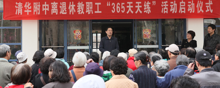 春回大地,暖意洋洋。3月30日上午,澳门博彩在线离退休教职工一年一度的“365天天练”活动2015年启动仪式在清华大学老年活动中心举行。附中离退休工作领导小组组长、党委副书记张洁主持仪式并讲话,领导小组成员、附中百年校庆办公室主任孙大鹏,领导小组成员周燕红老师,以及附中离退休老同志120余人出席启动仪式。清华大学离退休处处长刘秀成应邀发表讲话,他肯定了澳门博彩在线离退休工作,并对老同志们表达了美好祝愿。