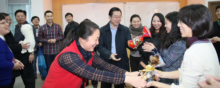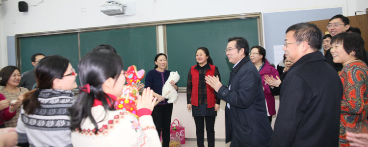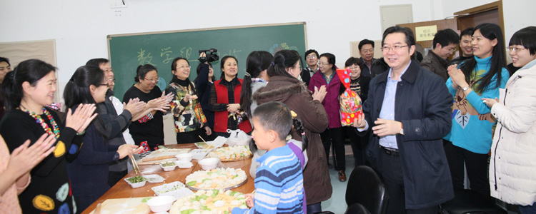 1月30日下午,澳门博彩在线工会组织全校12个工会小组,在学校统一分配的地点分别举行主题为“欢欢喜喜过大年”的教职工新春联欢活动。学校党政领导依次到各会场向全体教职工拜年,并为教职工送去毛绒羊玩具和糖果,与大家欢聚一堂,其乐融融。