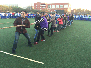 11月21日下午,澳门博彩在线高一学部(高14级)除体育特长班以外的17个班级500余名学生在学校操场举行拔河比赛。学生发展中心主任白雪峰、教学管理中心主任尹粉玉、高一学部主任潘天俊、以及高一学部全体班主任及青年教师全程参与比赛并为同学们鼓劲加油。体育教研组组长林冬梅带领体育组老师倾情加入为大赛提供技术支持。