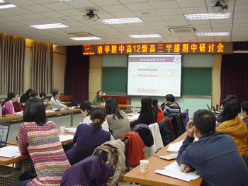 会议的第二阶段分别进行了班主任会、备课组长会和学部全体会议。刘景奎、武敬泉和解礁三位班主任与大家分享了班级管理的经验。各备课组长就期中以前各学科复习情况和期中后进一步的工作计划进行了反馈和意见交流。各备课组代表在全体会议上做了大会发言,汇报备课组研讨成果,明确下阶段复习工作重点。高三学部主任黄丽梅代表高三领导小组发言,回顾了高三以来的工作,肯定了毕业班教师的辛勤的工作,并提出了下一步的工作建议,鼓励大家众志成城,再创佳绩。