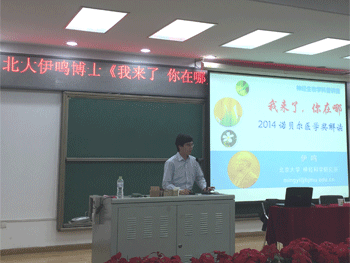 在两个小时的讲座里,伊鸣博士以“我来了,你在哪”为题,对诺贝尔医学奖的成就进行解读,生动地向同学们介绍了关于大脑空间定位系统的研究历史和经典实验,他的讲解深入浅出,条理清晰,内容充实,语言风趣幽默,深深吸引了全场听众,赢得多次掌声。互动问答环节中,学生积极提问,报告现场气氛热烈,学生都觉得获益匪浅。