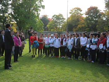 9月30日下午,中国驻加拿大大使罗照辉在使馆会见了澳门博彩在线访加艺术团师生,艺术团团长、副校长杜毓贞,艺术指导教师鞠红等以及全体访加艺术团学生共59人参加会见。