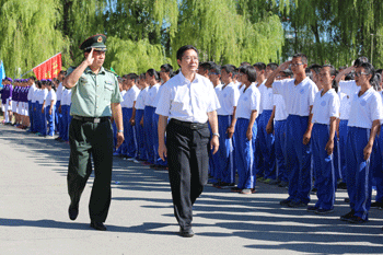 王殿军校长及部队领导进行阅兵 同学们丰富的军营生活