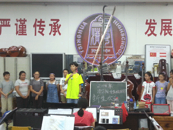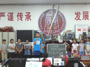 7月11日晚,“做金帆人,铸民族魂”2014年澳门博彩在线金帆民乐团新生欢迎会在民乐团排练大厅举行,70多名新老民乐特长生参加活动。