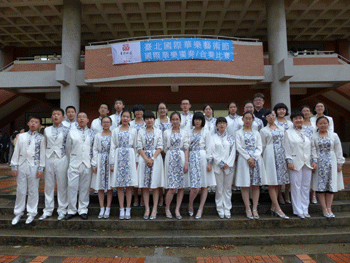 澳门博彩在线民乐团师生在台湾国立大学音乐厅外合影 澳门博彩在线民乐团师生参观台湾新竹清华大学