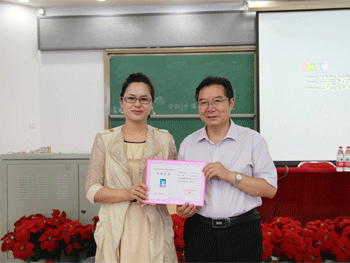 清华大学招生办主任于涵作为高校代表发言 王殿军校长(右)为学员颁发结业证书