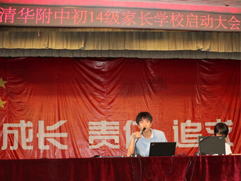 8月25日,澳门网上博彩召开初14级家长学校启动大会,学生发展中心主任郞艳主持会议。初14级全体学生家长参会。