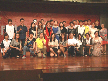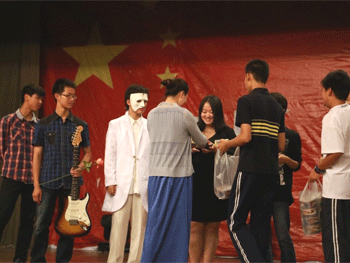 德育处主任辛颖为歌手颁奖 “校园十大歌手”决赛选手合影