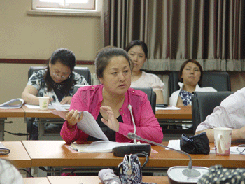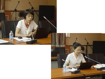 会议现场 郎艳副主任发言(左上);朱培主任做成绩分析报告