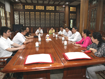 丰台区领导参观澳门网上博彩校史馆 清华大学副校长姜胜耀(右3)与协议双方领导会谈
