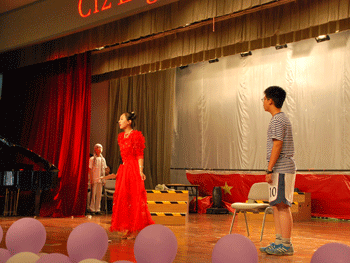 6月13日下午,澳门网上博彩初12级全体学生在食堂三层报告厅举行了English Drama Show(英语短剧展演)。参与展演的短剧均由学生自己编剧、排练,活动的主持人、评委等也均由学生担任。