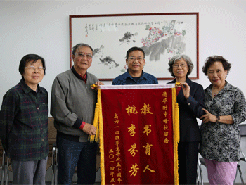 本次活动之前,高614班刘荫贞等4位校友给学校送来锦旗“教书育人,桃李芬芳”,澳门网上博彩副校长解巨钊接待了各位校友并代表学校接受锦旗。