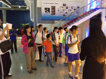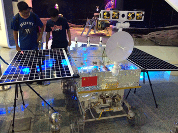 学生观摩“玉兔”月球车 学生、老师在中国航天员中心合影