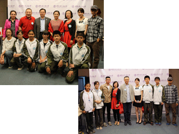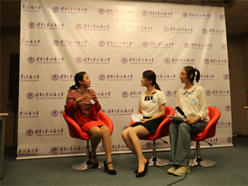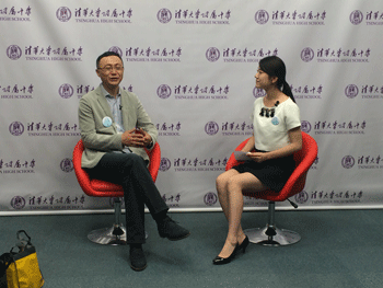 学生主持采访曾媛(左1) 董浩(左1)接受学生主持采访