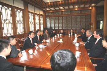 签字仪式后,姜胜耀、王殿军和蒙特格瑞分别讲话 双方在工字厅内合影留念 .
