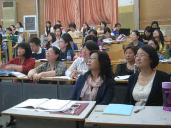 课堂讨论 专家:于霞主任(前左) 杨鲁新教授(前右)