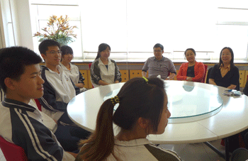 学生代表发言 方妍书记(右1)认真解答同学们提出的问题