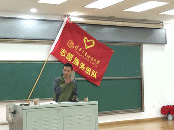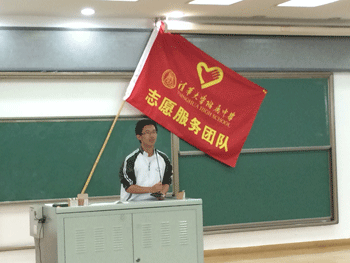 杨国兴老师向志愿者提出要求 罗杰夫同学向志愿者做动员