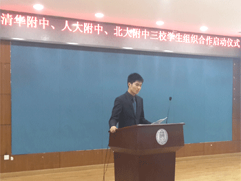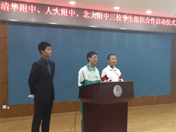 接下来人大附中校学生会主席、北大附中校团委副书记分别介绍了各自学校的教育教学实际情况,表示非常赞成建立三校学生组织。