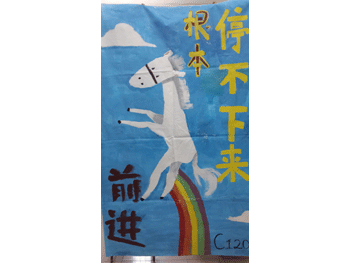 淡彩中国画、写意色彩画、卡通动漫人物……学子各展神通,水粉、马克笔、水彩笔、自喷漆等纷纷上阵,同学们尽抒自己对艺术的理解,大胆地在画布上放飞思维,展示个性魅力,创作了一幅幅风格各异的作品,用涂鸦的方式绘画心中的班级文化、梦想的校园。一幅幅绚丽的作品吸引了许多有着艺术爱好的游客,纷纷驻足观看,涂鸦现场气氛热烈。