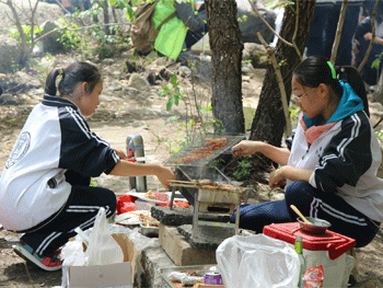 同学们以班级为单位,分成小组的形式,架炉灶、生柴火,拿出自带的炊具和食材,或是炭火烧烤、或是煎炸炒菜,各自展示自己的厨艺,享受自己制作的美食的同时,也亲身体验劳动的乐趣。随同的老师,热情丝毫不逊于学生,在杜校长的带领下,大家一起动手包起了饺子,在野外享受了一顿美味饺子大餐。野炊过后,同学们观赏了神堂峪的山中美景,最后打扫干净各自的场地,在班主任和导游带领下,意犹未尽的离开场地。