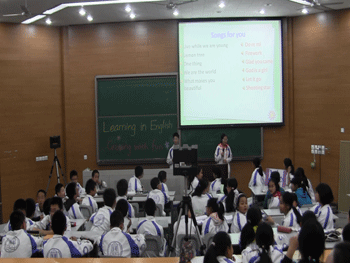 5月5日下午,澳门博彩在线初二年级(初12级)英语实验班初1204,初1209,初1212三个班全体学生在实验楼D203教室联合举行了主题为“Learning in English,Growing with fun”(用英语学习,在快乐中成长)的多主题知识技能竞赛。活动的主持和评委均由学生担任,三个班级的英语老师到场指导。