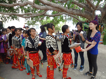 在五天的公益交流中,国际部的学生感受了景颇传统歌舞《目瑙纵歌》的欢快;聆听了乐安东博士与李旸用英文作的“景颇社会所面临的困境”的演讲;与景颇孩子一起逛寨子,爬山,认识当地的植物,采集野果,相互学习英语和载瓦语;合作铺建榕树根儿童活动中心前面上坡的道路;去龙江游泳并宣传环保。在公益活动结束之后,国际部的学生还前往大理,在鸬鹚捕鱼、扎染工艺、古城漫步以及洱海骑行中领略了当地的风土人情。