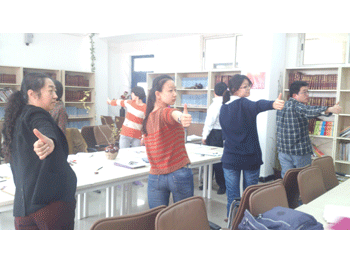 在培训会上,陈明秋先指导老师们做“连数字”游戏,又做“端铅笔”游戏,随后她带领大家讨论这个活动的主题及部分细节如重复的数字意味着什么、每次连数字能达到的程度不同意味着什么等;她最后介绍班主任可将这次强调“心灵、信念、调整”活动运用到高三一模前后心理班会调整中。本次培训会内容虽然是高三班会常用到的传统项目,但启发班主任在教育工作中“寓教于乐”。