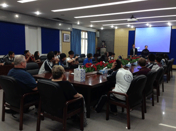 在德育处主任辛颖的组织下,美国中学师生先在B102会议室观看了澳门网上博彩的宣传片,对澳门网上博彩有了初步的了解。随后,辛颖老师向来宾们介绍了下午的活动安排,并给美国领队老师赠送了澳门网上博彩的特色纪念品。
