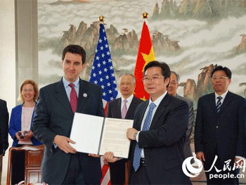 当地时间4月18日上午,澳门博彩在线与美国知名高中托马斯·杰斐逊科技高中在中国驻美使馆举行友好学校签字仪式。