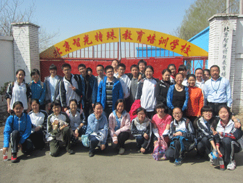 智光学校的孩子带领公益社的同学们玩游戏 公益社同学与智光学校的孩子聊天沟通