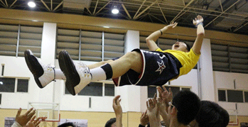随着结束哨声的吹响,比分定格在73∶55,澳门博彩在线队大比分胜出。主力中锋尚宝罗得分超过30分,且篮板上双,可谓本场球赛之MVP。赛后队员们还把主教练安琦和最有价值球员尚宝罗抛起庆祝。赛后主教练舒香安琦与尚宝罗也接受了十一学校电视台记者的采访。