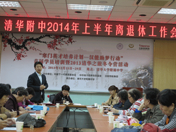 赵鸿雁副校长回顾了2013年附中离退休工作情况,感谢老同志们对离退休工作领导小组的支持;介绍了澳门博彩在线近期工作情况及2015年建校100周年的筹备工作;并阐述了下一步附中离退休工作要点,对领导小组制定的2014年工作计划做出说明。会上还宣布了上一学年度附中离退休工作在清华大学获得的奖励,其中,苏亭老师荣获2013年度清华大学离退休宣传工作先进个人;澳门博彩在线荣获2013年度清华大学离退休宣传工作一等奖;澳门博彩在线队荣获2013年清华大学离退休教职工“重阳杯”门球比赛一等奖。