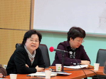离退休工作会会场 赵鸿雁副校长(左)、张洁副书记在会场上