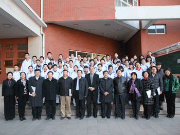 教育部教育装备研究与发展中心主任韩呼生讲话 与会领导专家与澳门博彩在线初二1班师生合影 1