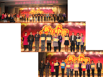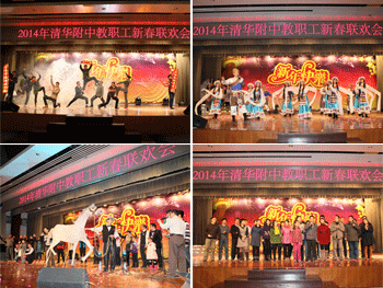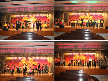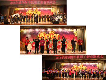 全体工会干部首先登场,为大家献上了深情激荡的歌曲《相亲相爱一家人》,拉开了联欢晚会的序幕。11个工会小组自编自导,奉献出多姿多彩的节目。德育工会小组带来了欢乐的舞蹈“快乐家庭”,生动表现了附中教工昂扬向上的生活激情。生化工会小组的歌曲《幸福住我家》让大家感受到附中大家庭的温暖;英语工会小组靓丽的歌舞“美好时光”让人耳目一新;政史地工会小组的歌曲《万物high》热情澎湃;体育工会小组的杂耍和走秀《健与美》展示出附中人活泼生动的情怀;国际部工会小组的歌舞《天路》和《北京的金山上》美丽多姿;物理技术工会小组的歌曲“亲宝贝”系列歌曲逗趣迷人;语文工会小组情景剧《与你分享过去、现在、未来》巧妙穿插附中的生活工作情景,让人忍俊不禁;数学工会小组的歌曲和造型“数学模特秀”展示出学科特色;教务工会小组的歌舞教务版《爸爸去哪儿》以及歌舞《欢乐中国年》欢乐祥和;办公室总务培训工会小组的歌曲联唱《咱们工人有力量》《我的中国心》《国家》热情感人。