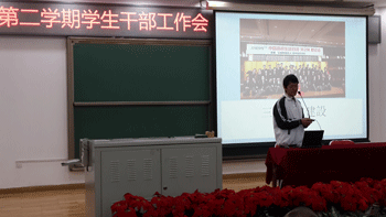 会上,校团委学生会主席团成员回顾了上一学年的工作情况,同学们随着精美的照片回忆了一二·九运动、汉字英雄、新年嘉年华等重大活动的精彩瞬间。随后,主席团成员布置了下一学期的工作内容,特别就学生节、百年校庆等重要活动进行了详细的说明。接着是经验分享,高13级的丛蓉和王宇轩两位同学与初中学生干部分享了自己作为学生干部的经验体会,进行了有效的互动。高1301班、高1303班、高1203班的主要学生干部在高中会场介绍了本班的特色班级文化。最后,德育处陈卫东、王敏老师分别在初、高中会场总结了值周、日常卫生检查等工作,并提出了新的要求。(档案室编辑)