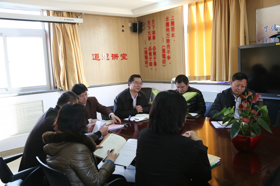 王殿军校长(正面右3)讲话 朝阳区教委副主任王彪(左3)讲话