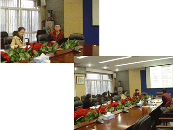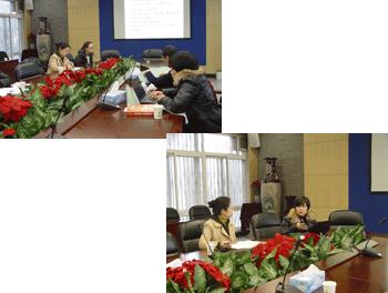 卢静(左上)、赵琼做汇报 会议现场