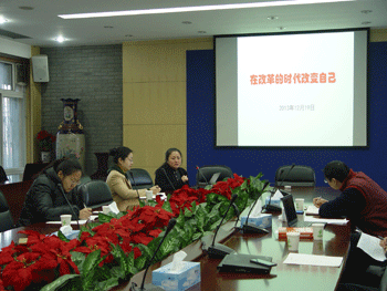 随后,方妍书记对教师的工作表示了肯定与赞赏,备课组开展的教学活动在激发学生兴趣、扩大学生的参与度,学科与社会实践密切联系方面都走在了前面,与十八届三中全会提倡的教育精神相符。最后,方妍书记针对当下中高考改革的局势做了《在改革的时代改变自己》的报告,从“招、考、教、学”四个方面对比改革前后的变化,分析了学校面临的机遇与挑战。希望教师重新思考学科性质、学科价值的功能、给学生提供更多自主学习的时间和空间等问题。